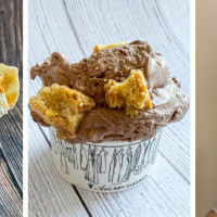 A collaboration with OB Noodle House and inspired by their peanut butter whiskey Skrewball, this double dark chocolate 70 gelato has ribbons of a peanut butter swirl consisting of organic peanut butter, condensed milk, honey, vanilla, and a pinch of salt.